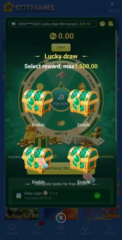 ST777 Game has a very clean and user-friendly design. You can easily move between different sections without getting confused. Even if you are using an earning game for the first time, this app will feel familiar and easy.