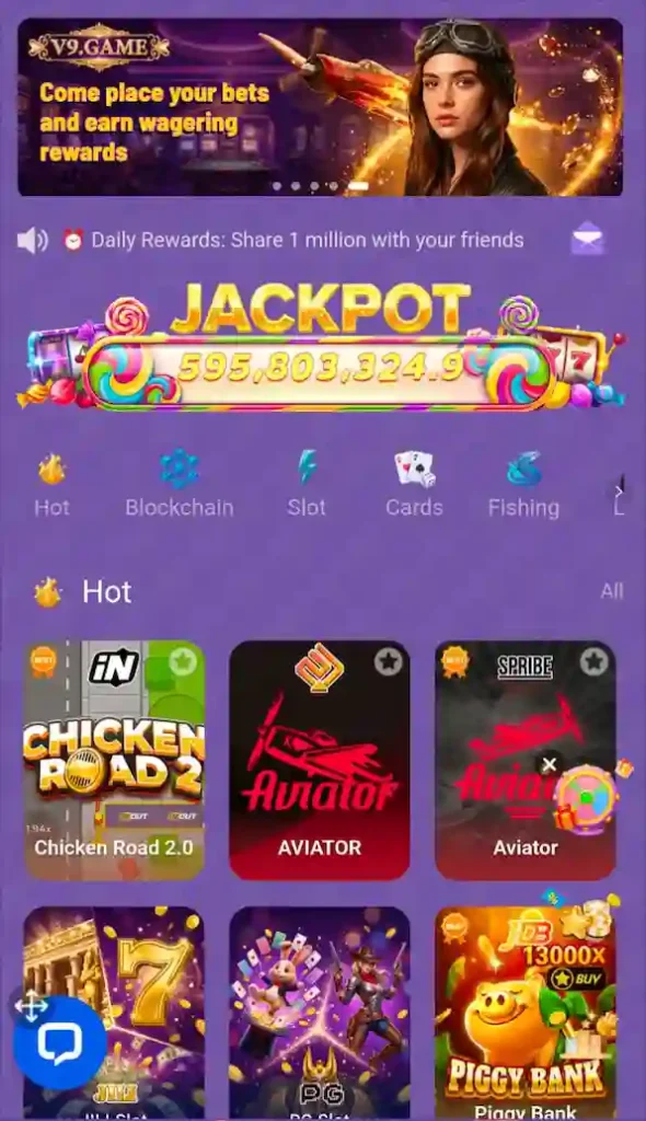 V9 offers color prediction games, lottery games, PG slots, color trading, and several fast mini games to keep players entertained and rewarded.